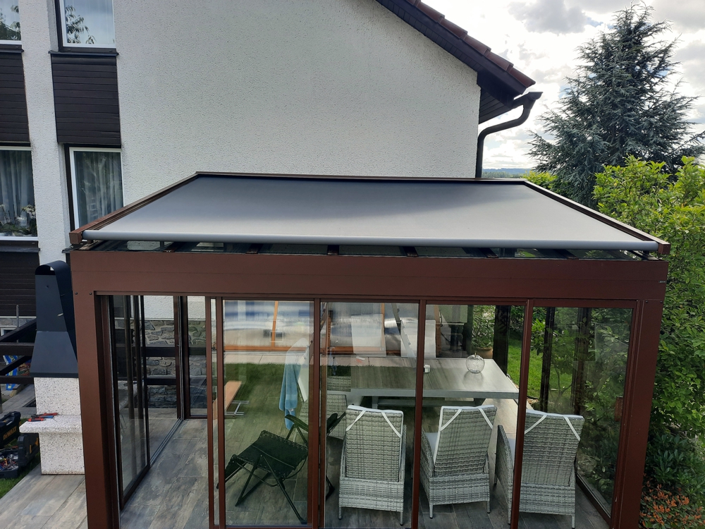 VENKOVNÍ VÝSUVNÁ MARKÝZA NAD STŘECHU ZIMNÍ ZAHRADY NEBO PERGOLY