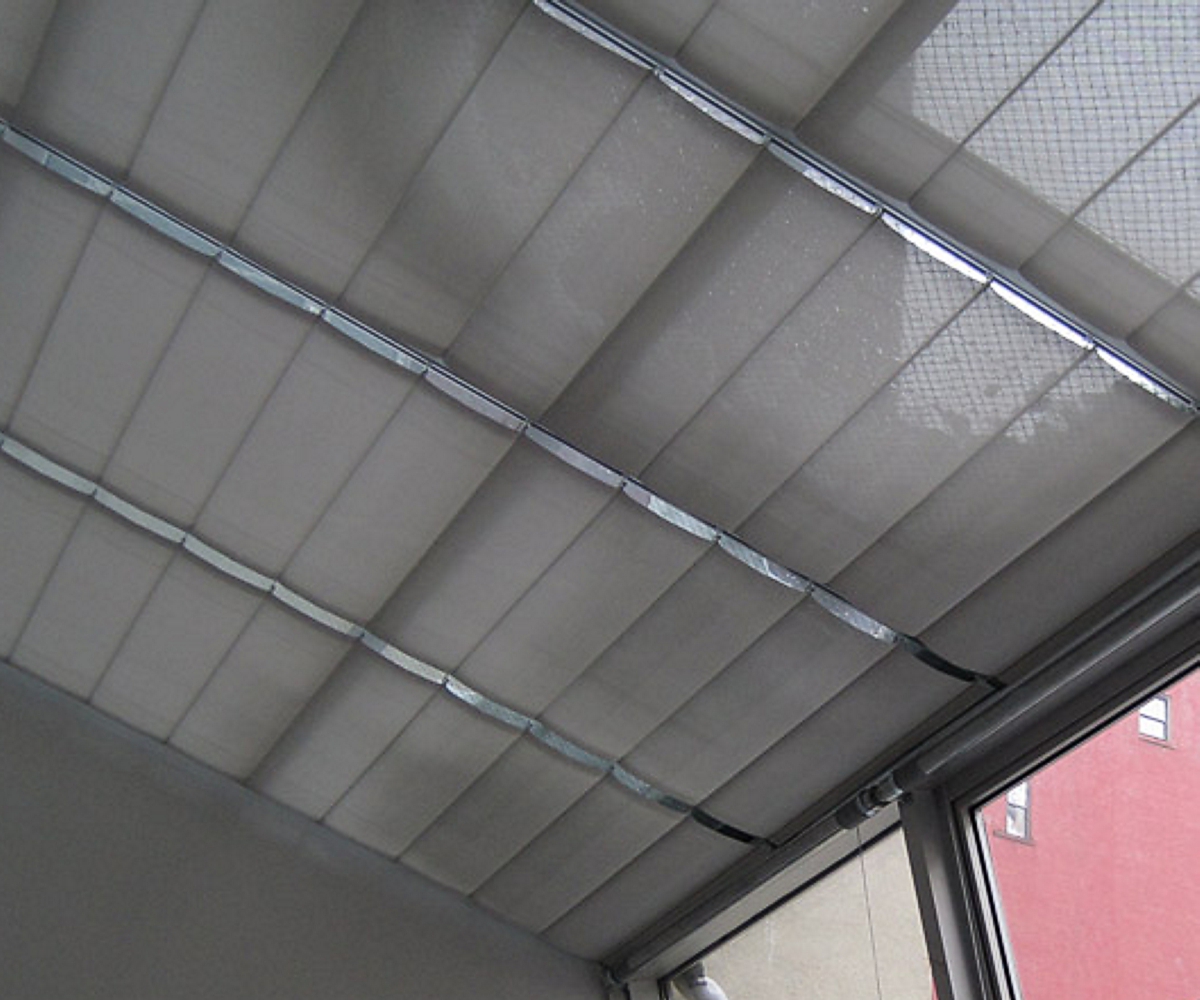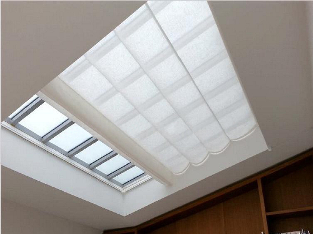Stínění světlíků Baldachýn je textilní stínicí prvek instalovaný pod světlík nebo prosklenou střechu.